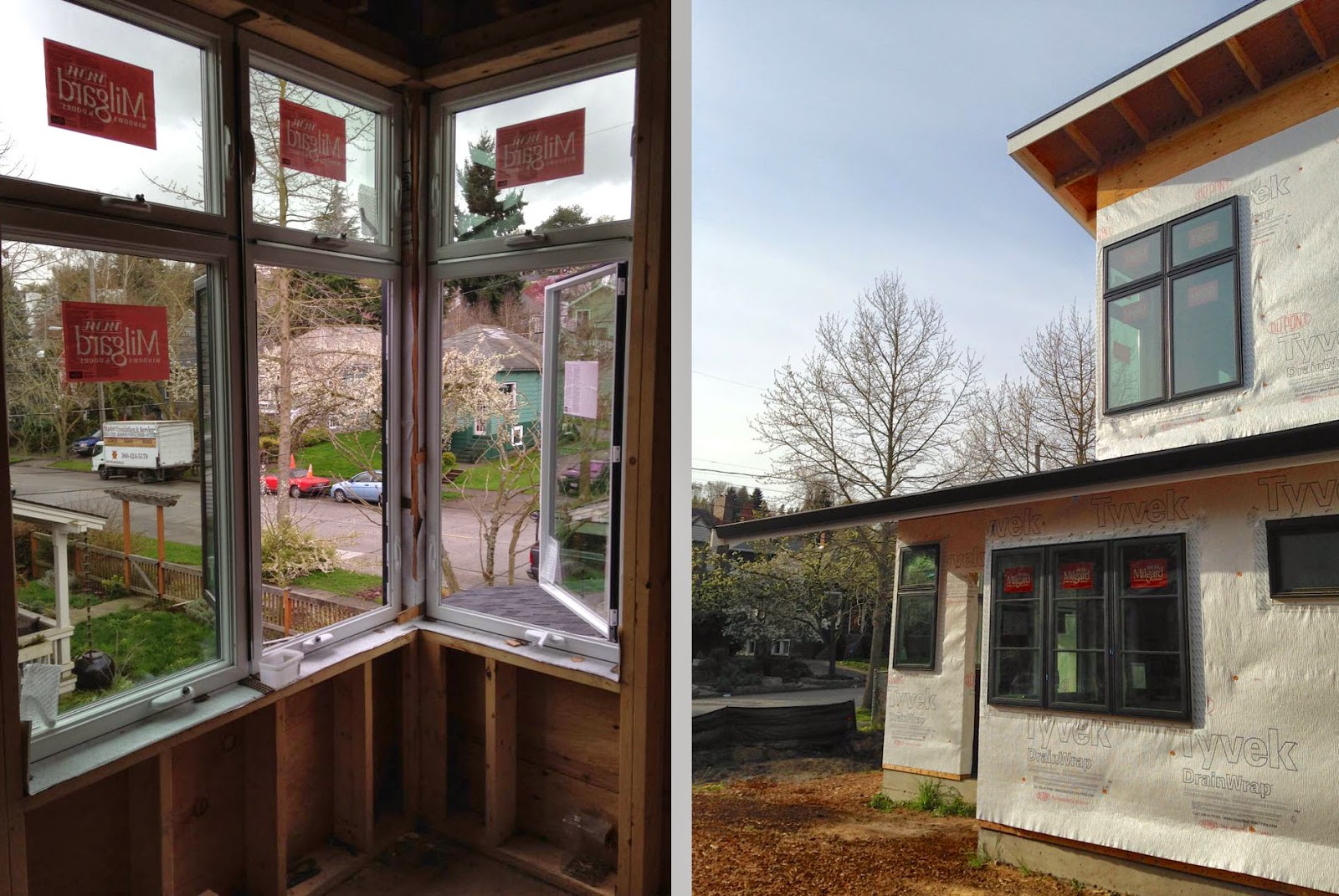 We need to choose our exteriors doors so that Neil can install the final casing and then put a temporary door up to secure the house. Many of the contemporary door styles, just don't fit with what we want...and the ones we really like are over $3000 for one door, like 3 or 5 below. We like the use of metal on those two and our thinking is to do something ourselves, like #6. Start with a $600 fir door (which is really a fir veneer with a solid core of other wood) and then route out and apply a metal panel to the exterior. Even thinking of laser cutting our address number into the top panel.
